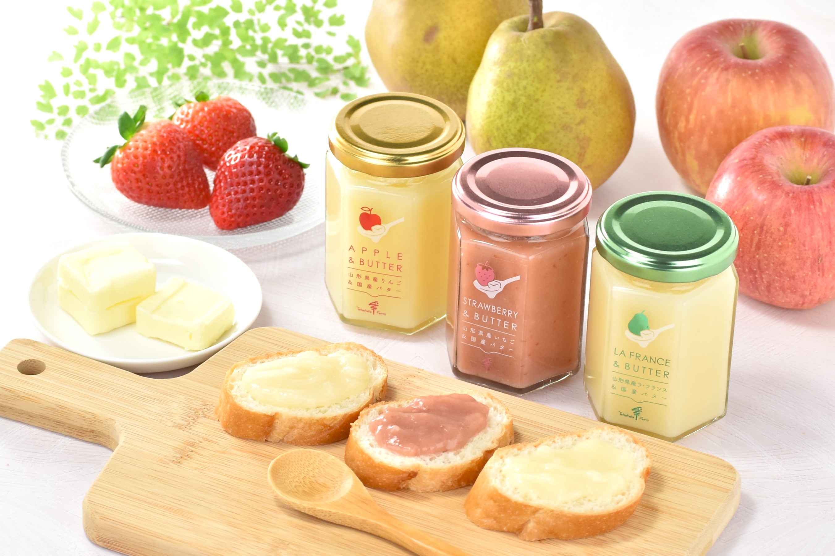 ホーム 製品紹介 ジャム フルーツ&バター ジャム フルーツ&バター 国産果実の風味を生かしながら、国産バターと生クリームを加えてまろやかさの中にコクのあるスプレッドに仕上げました。トーストだけでなく、クッキーでサンドしたりパンケーキにもお使いいただけます。 フルーツ&バター ラ・フランス&バター150g756 円(税込)りんご&バター150g702 円(税込)いちご&バター150g810 円(税込) 製品カテゴリ一覧 ジャム ジャム145g NEW! ジャム290g NEW! ミックスジャム オーガニックジャム フルーツ&バター 紅茶のジャム チョコレート・ミルクジャム ミニジャム NEW! 季節限定ジャム フルーツソース フルーツソース デザート ミックスゼリー フルーツゼリー ダブルテイスト フルーツプリン リオレ 国産野菜のプリン フルーツシャーベット 飲料 ストレートジュース フルーツスムージー 玄米甘酒 ドレッシング ドレッシング YAMAGATAドレッシング その他 たかはたソース 焼肉ソース